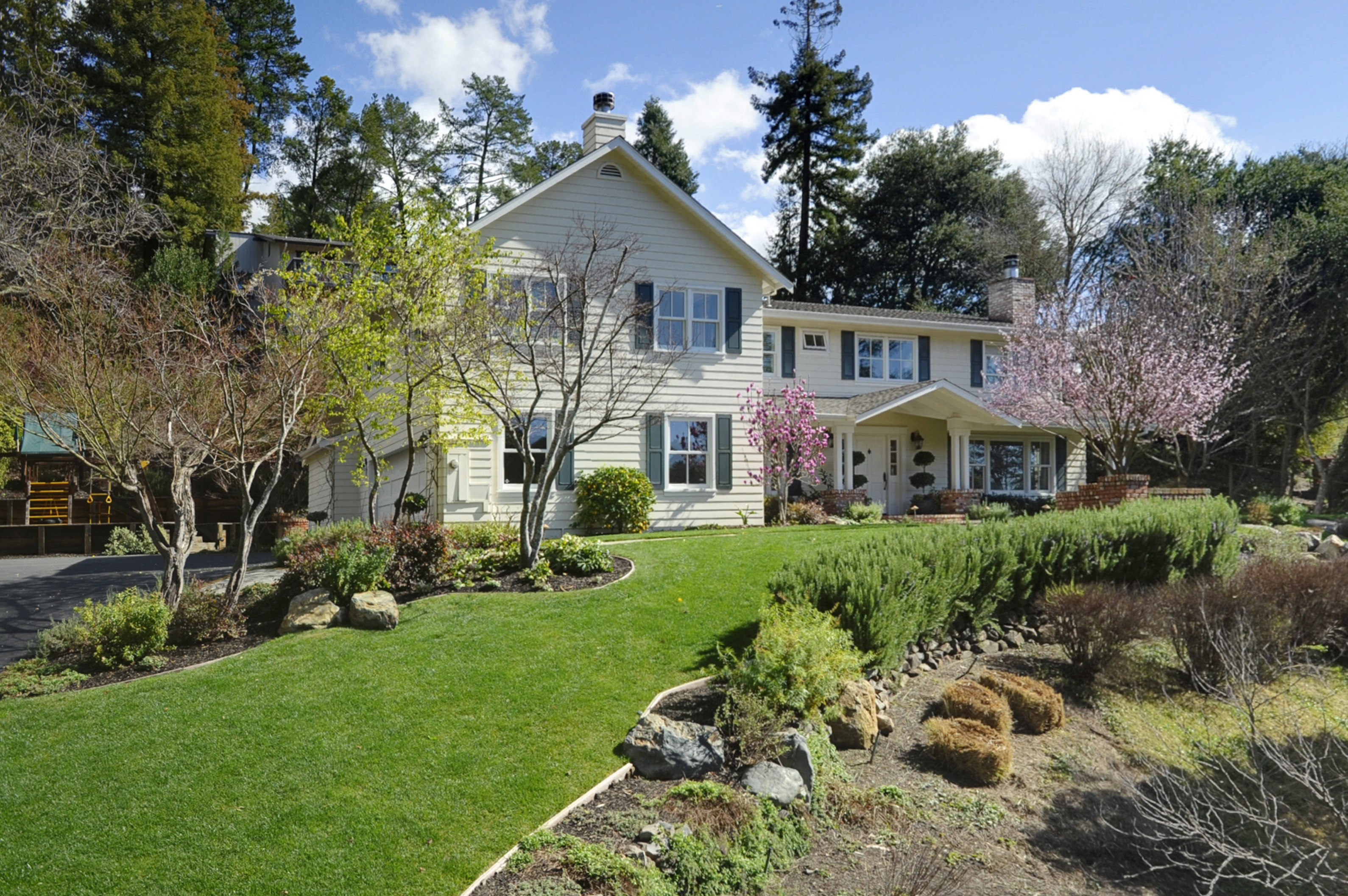A Happy Valley Treasure ~ This beautifully crafted New England traditional style two-story home captures one’s heart and soul. Rebuilt in 2001, the home is set on a .48 +/- private acre lot and is meticulously landscaped with a secured gate. This exquisite property is tucked off the main road and has a grand yet intimate appeal with a beautifully designed yard. The abundant foliage and surrounding hills offer incredible beauty. The interior of the home matches the exterior with a grand, but warm entrance and a very fluid floor plan that accommodates daily living as well as entertaining. Interior detailing is thoughtful with exceptional millwork including beautiful wainscoting and oversized crown and trim.